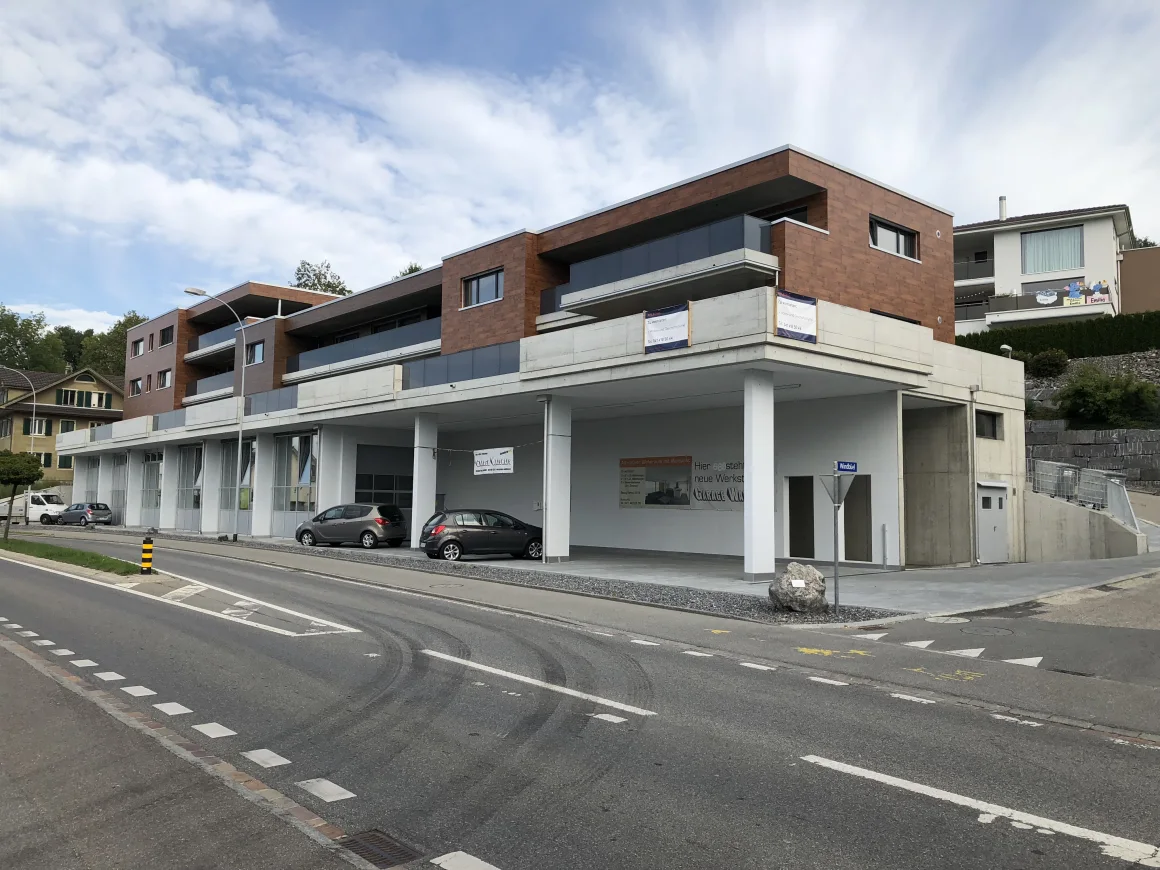 Neubau Umbau Landwirtschaft Gewerbe Öffentliche Bauten Neubau MFH mit Autowerkstatt, Ruswil Neubau Mehrfamilienhaus mit Tiefgarage und Autowerkstatt. Neubau Gewerbehalle, Ruswil Sigrist Anhänger Ruswil